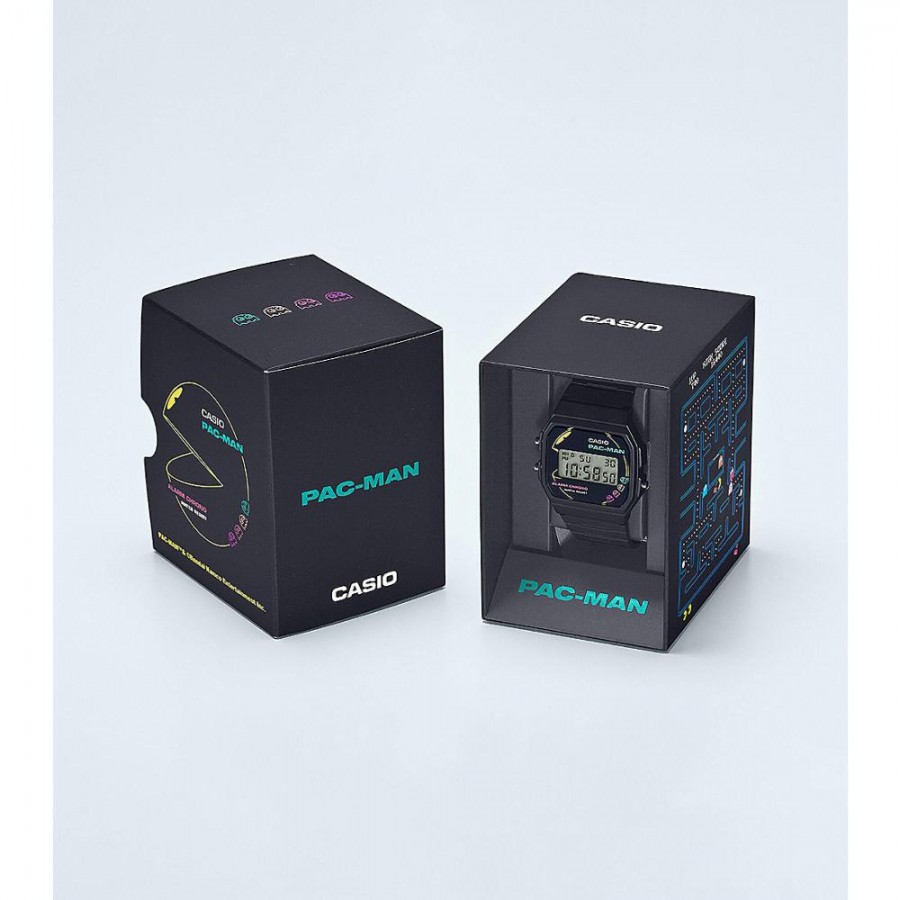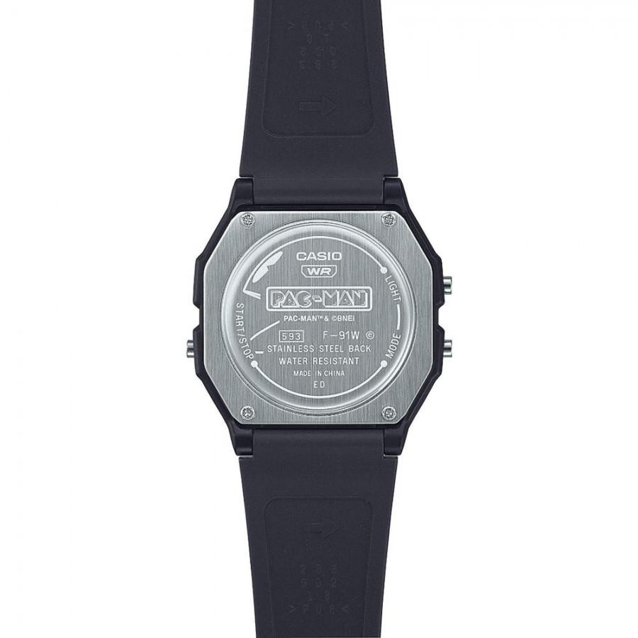 Datum, budík, osvětlení, stopky, den v týdnu, 12/24 hod. režim, duální čas, vodotěsnost WR30M. Casio F-91WPC-1AER PAC-MAN Collaboration z řady Vintage Collection jsou obecně oblíbené díky svému retro designu. Speciální kolekce vytvořená ve spolupráci s BANDAI NAMCO Entertainment Inc. v úpravě odkazující na legendární hru PAC-MAN ™.