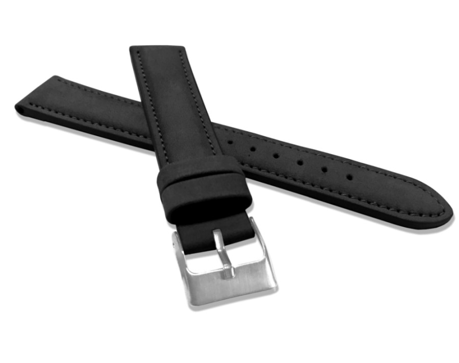 MINET MSNUN20 - Černý prošitý kožený řemínek MINET z jemného nubuku - 20