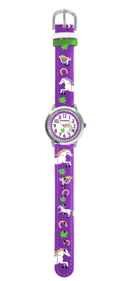 CLOCKODILE Fialové dívčí dětské hodinky a kamínky KONÍK