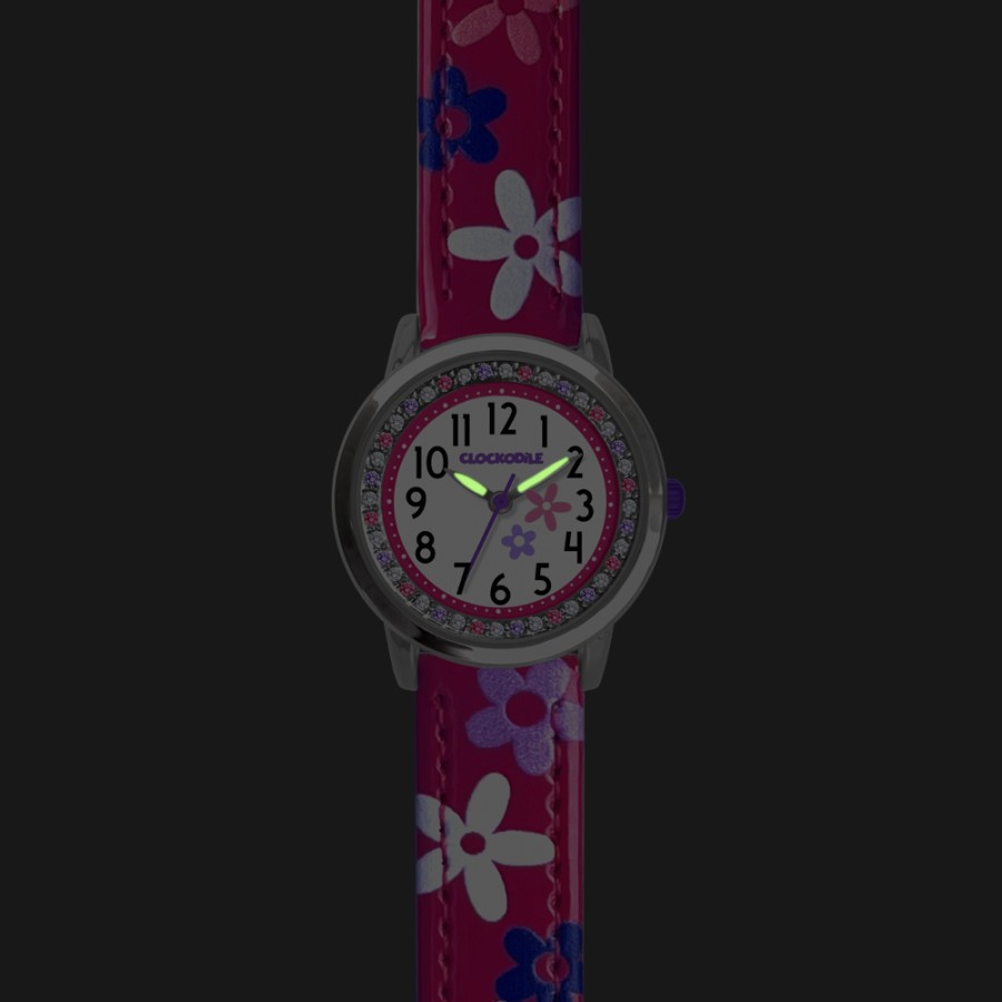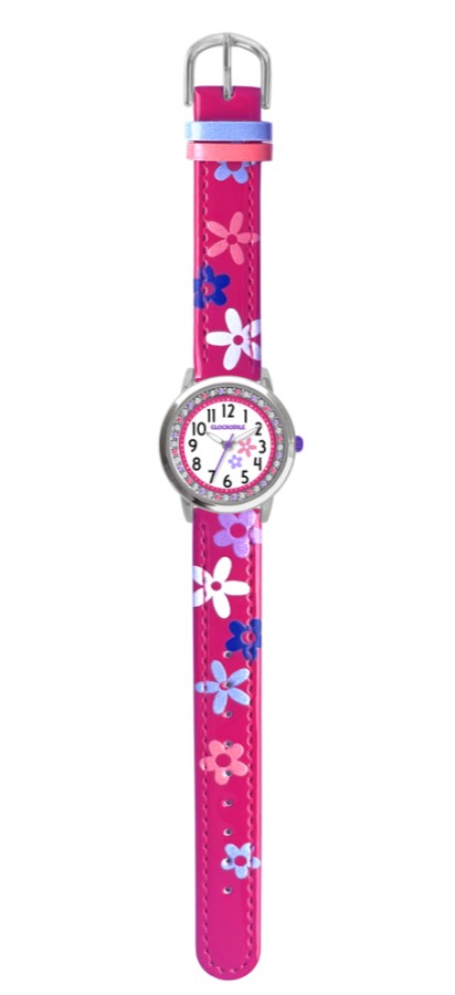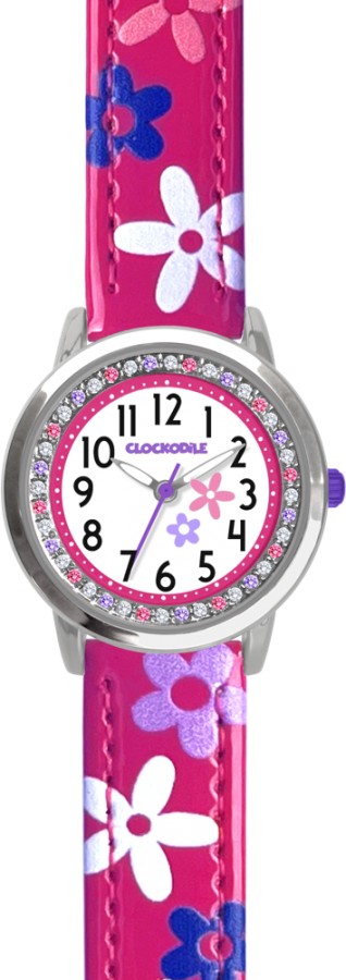 CLOCKODILE CWG5203 - CLOCKODILE Růžové dívčí dětské hodinky s kamínky a kytičkami