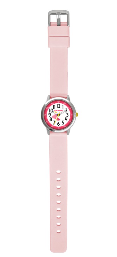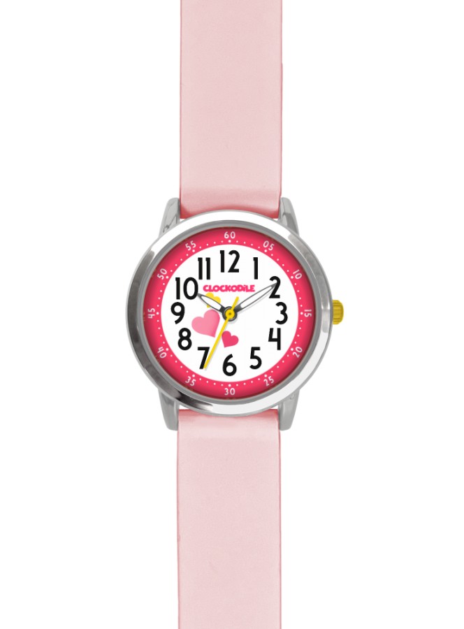 CLOCKODILE CWG5171 - CLOCKODILE Růžové dívčí dětské hodinky se srdíčky a světle růžovým silikonovým řemínkem