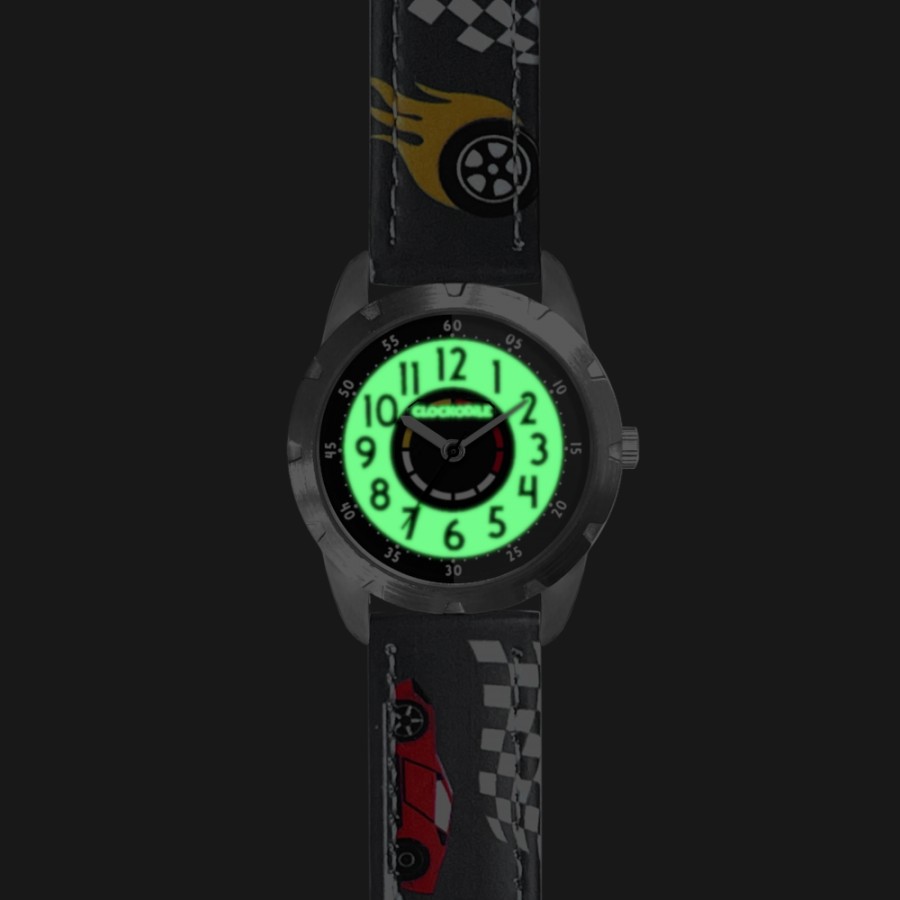 CLOCKODILE Svítící šedé chlapecké hodinky ZÁVODNÍ AUTA