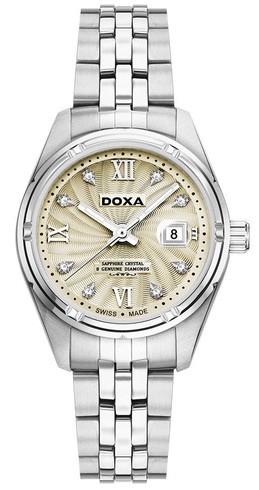 Elegantní dámské hodinky DOXA D174SCM s tenkým ocelovým pouzdrem a safírovým sklem.