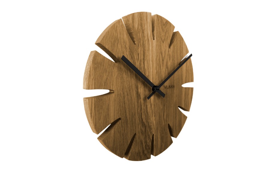Dubové hodiny VLAHA vyrobené v Čechách s černými ručkami