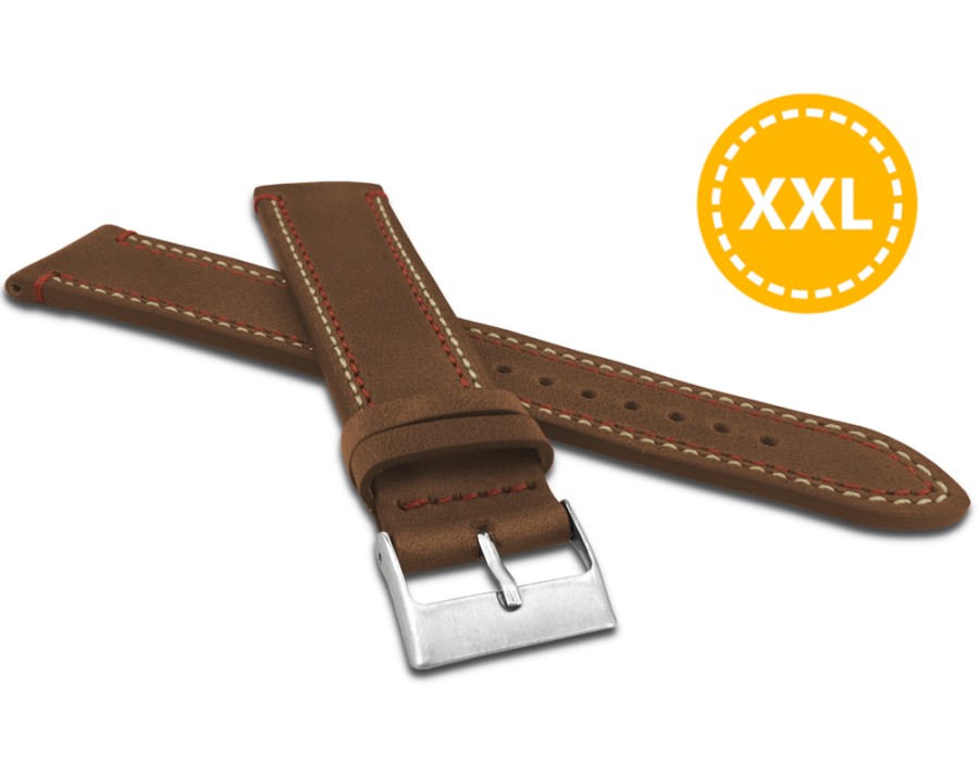 LAVVU LSDXE20 - Dvojitě prošitý hnědý řemínek LAVVU SPORT z luxusní kůže Top Grain - 20 XXL