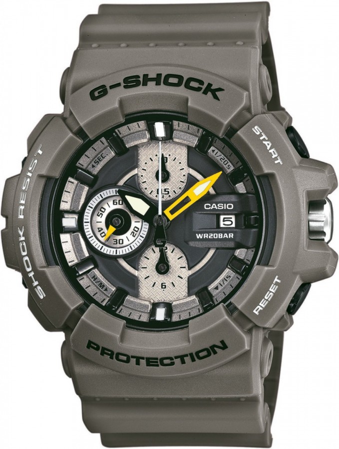 Sportovní hodinky odolné proti nárazům a vibracím. Zobrazují datum a stopky s přesností 1-20 vteřiny a maximální dobou měření 12 hodin. Mají luminiscenční ručky, minerální sklo a vodotěsnost 200m. Pouzdro i tah je z plastu. Tento model je v analogovém provedení. Rozměry 55 x 52,7 x 16,6 mm. Váha 72,9g.