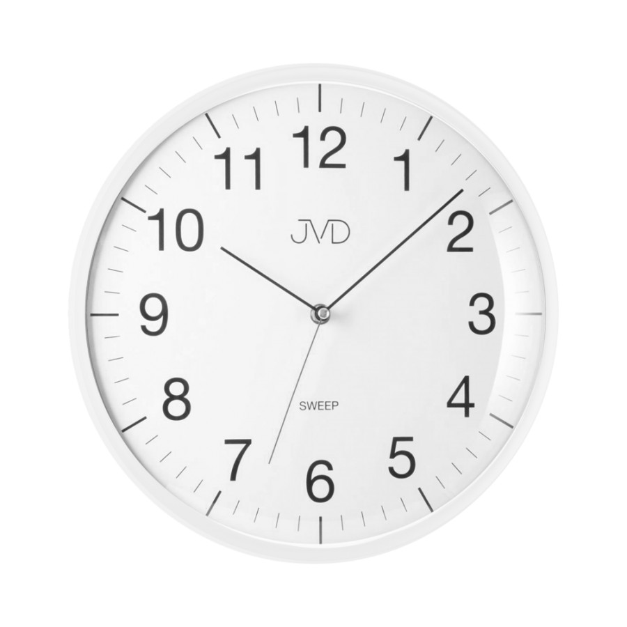 Plastové hodiny značky JVD zaujmou právě svou jednoduchostí.