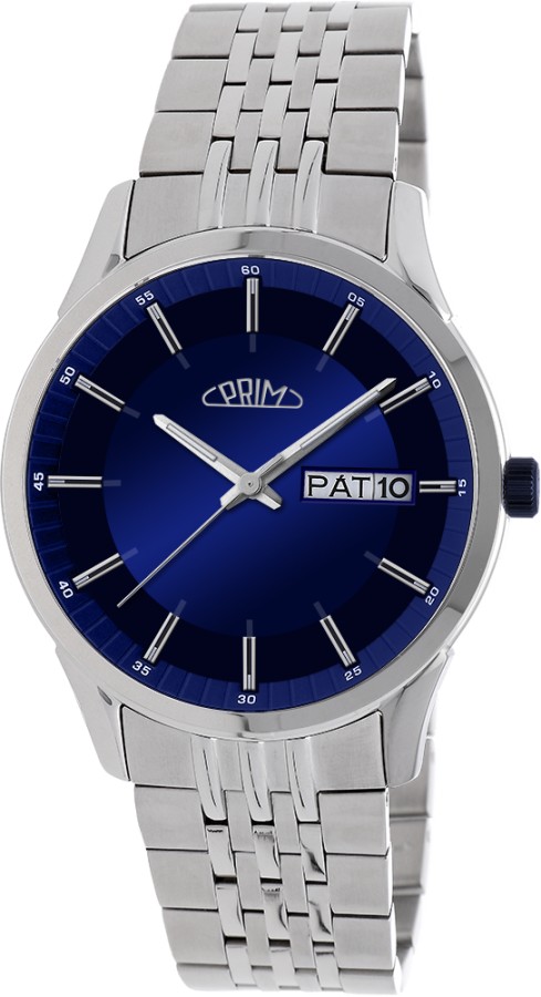 Elegantní hodinky PRIM Klasik 21 CZ se safírovým sklem. Designéři nově navrhli číselník a konstruktéři pozměnili model a přidali šroubovací korunku, která zajistí voděodolnost 10 ATM. Hodinky zaujmou každého stylového muže. Samozřejmostí je u modelu ukazatel dnů s českými názvy.