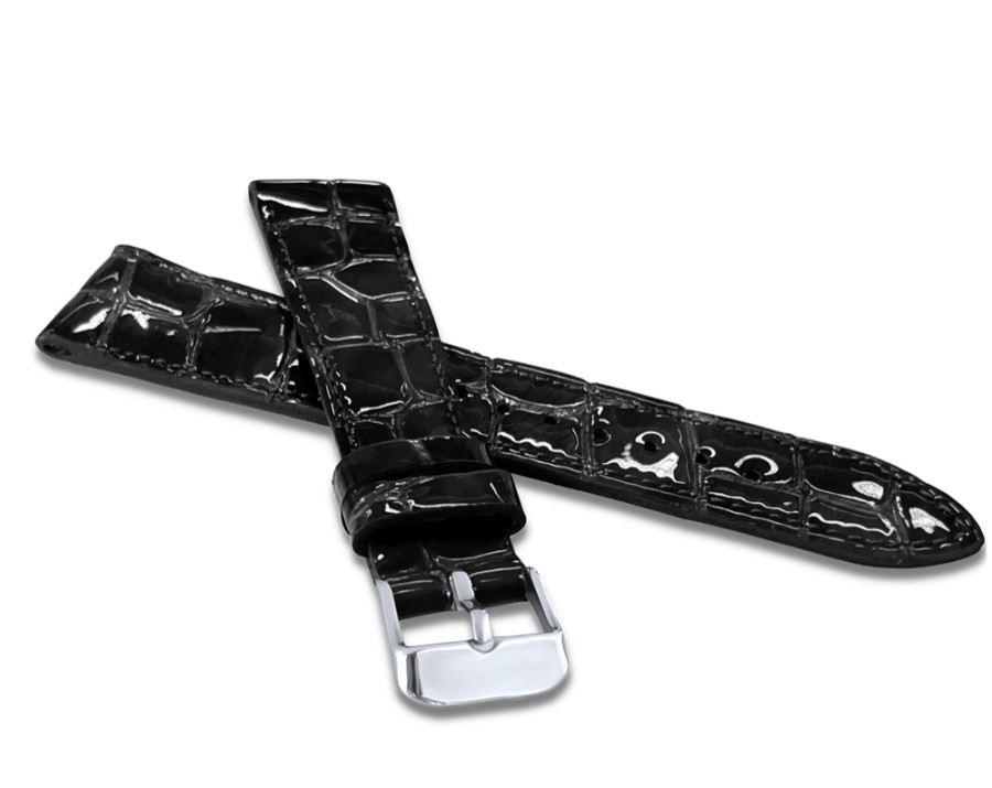 LAVVU LSAGB14 - LAVVU Černý lesklý prošitý řemínek CROCO OCALA z luxusní kůže Top Grain - 14