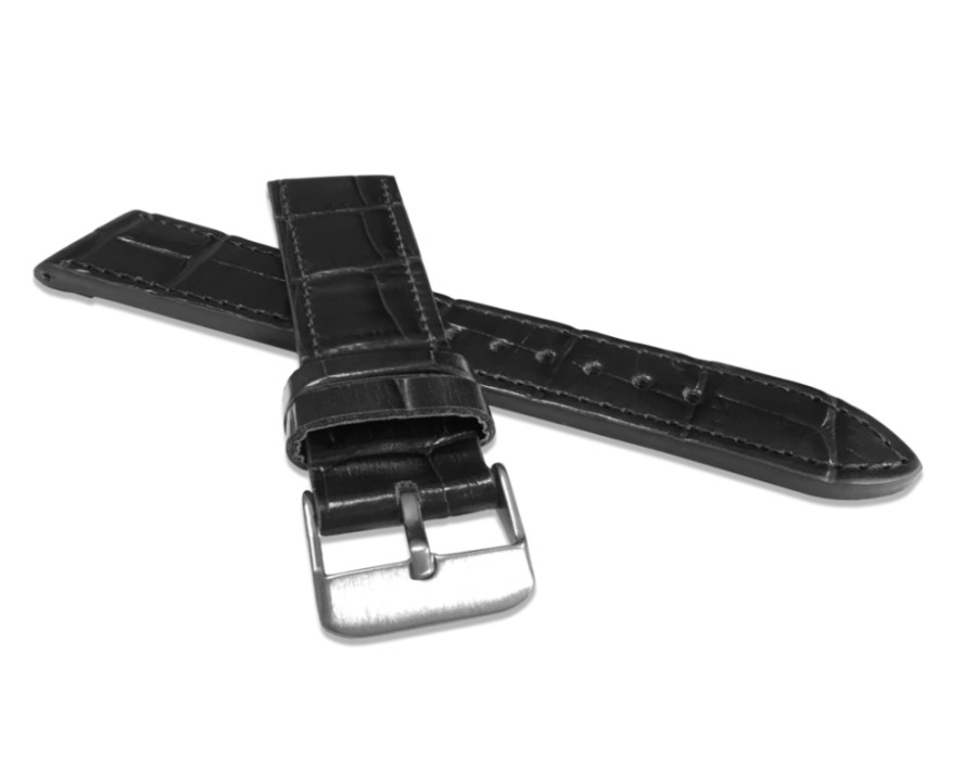 LAVVU Černý prošitý řemínek CROCO z luxusní kuže Top Grain - 18