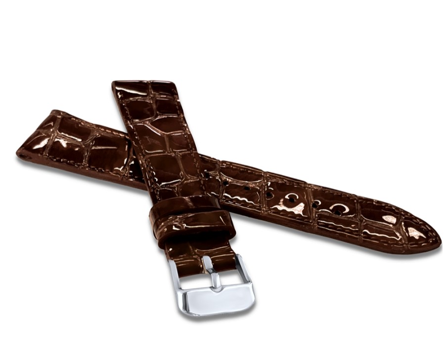 LAVVU LSAGC18 - LAVVU Lesklý tmavě hnědý prošitý řemínek CROCO OCALA z luxusní kůže Top Grain - 18
