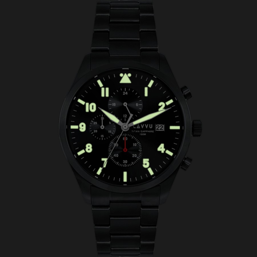 LAVVU Pánské titanové hodinky PILOT Chronograph Black 100M Sapphire