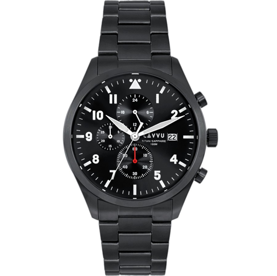 LAVVU LWM0292 - LAVVU Pánské titanové hodinky PILOT Chronograph Black 100M Sapphire