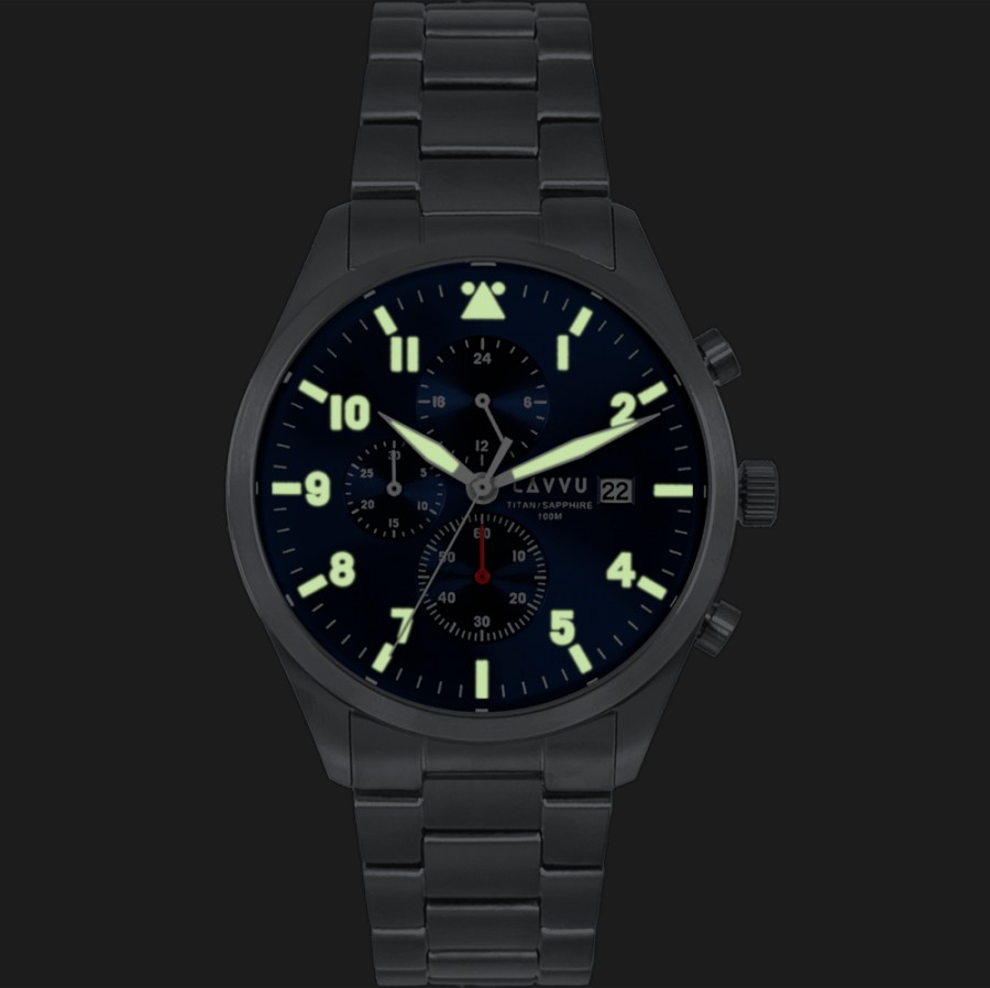 LAVVU Pánské titanové hodinky PILOT Chronograph Deep Blue 100M Sapphire
