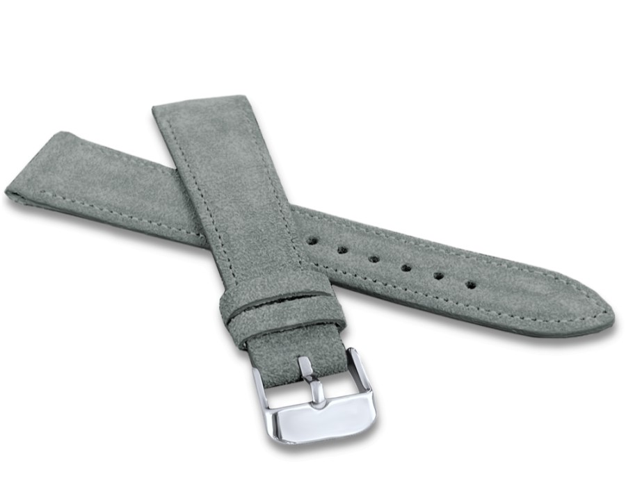 Tento řemínek je vyroben z pravé kůže typu "Suede", známé svou sametově jemnou strukturou a přirozeně matným vzhledem. Jde o broušenou vrstvu kůže – měkkou na dotek, poddajnou a mimořádně pohodlnou při nošení. Kůže pochází z tradičních evropských koželužen, které kombinují zkušenosti předchozích generací s moderními přístupy. Výsledkem je lehký, stylový řemínek, který si zachovává přirozený charakter a krásně se přizpůsobí zápěstí.