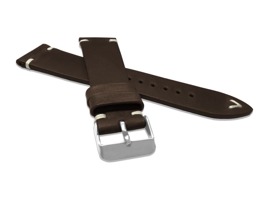 LAVVU LSNUC18 - LAVVU Tmavě hnědý prošitý řemínek RETRO z luxusní kuže Top Grain - 18