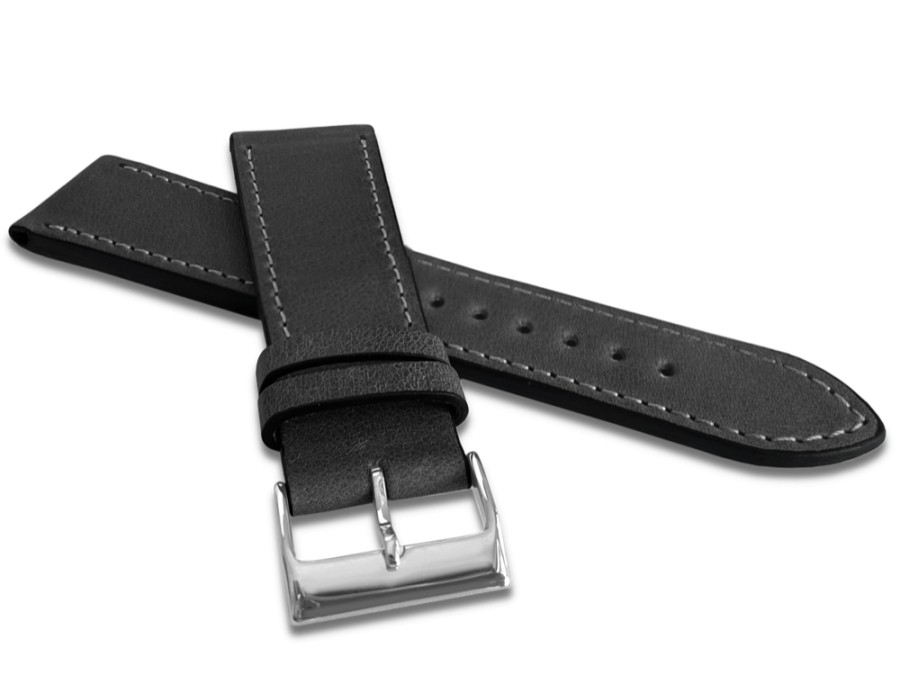 LAVVU Tmavě šedý prošitý řemínek Slim z luxusní kůže Top Grain - 20