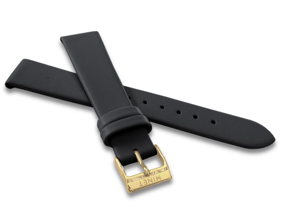 MINET MSLBG14 - MINET Černý kožený řemínek se zlatou sponou - 14
