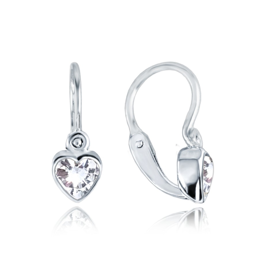 MINET JMG0237WSE00 - MINET Dětské náušnice s předním zapínáním srdíčka z bílého zlata se zirkony Au 585/1000 1,05g