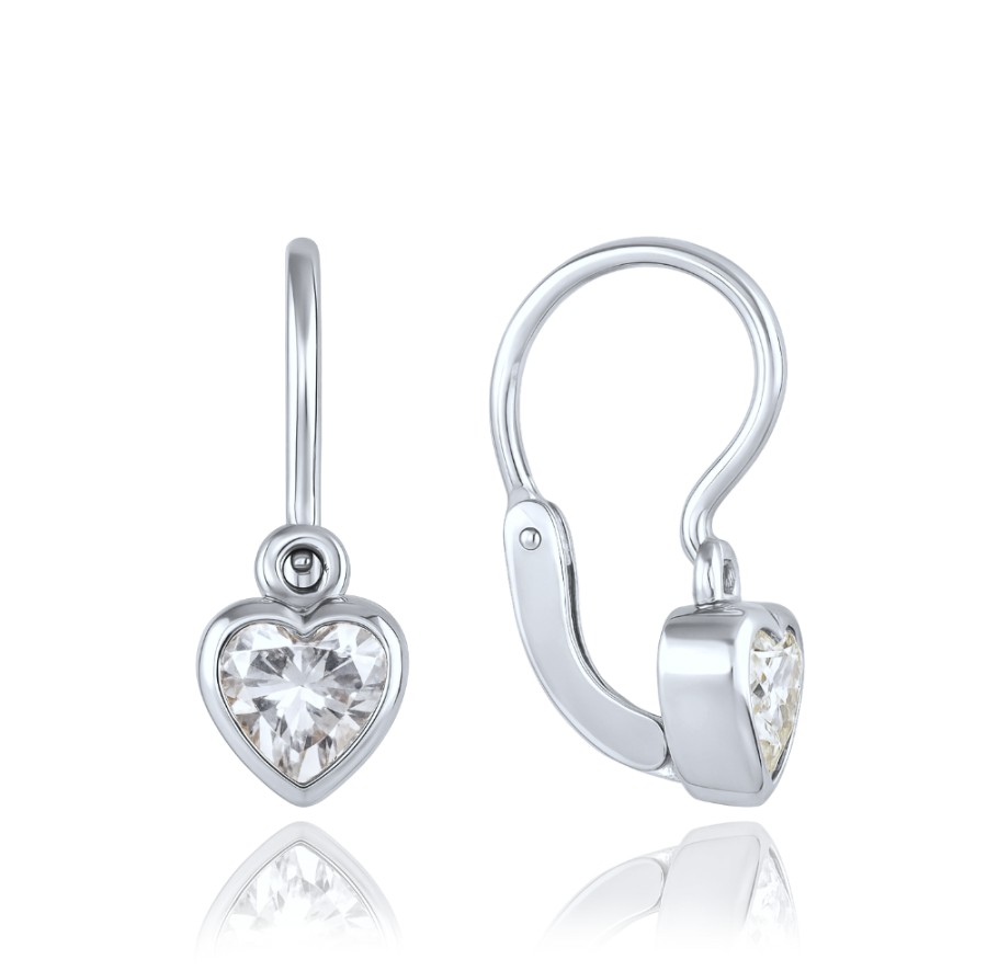 MINET JMG0237WSE01 - MINET Dětské náušnice s předním zapínáním srdíčka z bílého zlata se zirkony Au 585/1000 1,15g
