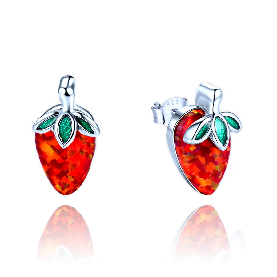 MINET JMAD0059SE01 - MINET Dětské stříbrné náušnice jahůdky s červeným opálem
