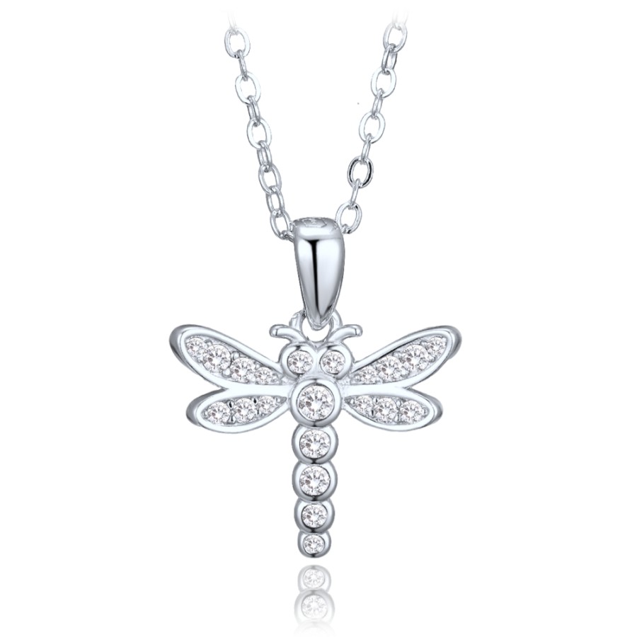 Stříbrné dětské náušnice MINET jsou vyrobeny z pravého rhodiovaného stříbra Ag 925/1000, které si dlouho udrží svou barvu i lesk. Mají motiv vážky a jsou zdobeny bílými zirkony. Zapínání je řešeno patentem pro bezpečné nošení.