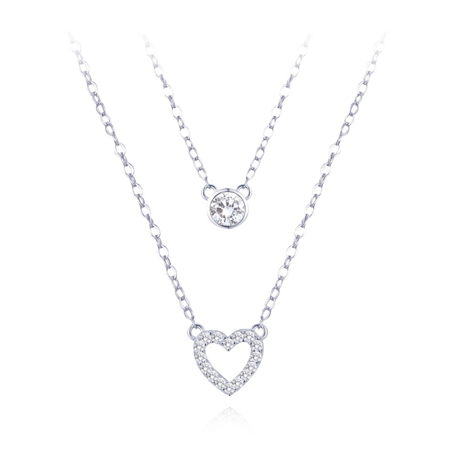 MINET JMAS0269SN45 - MINET Dvojitý stříbrný náhrdelník se srdcem a bílými zirkony