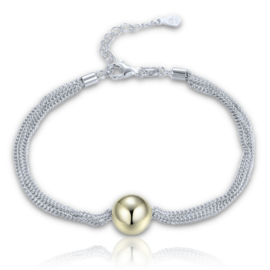 MINET Elegantní dvoubarevný stříbrný náramek se třemi řetízky s kuličkou