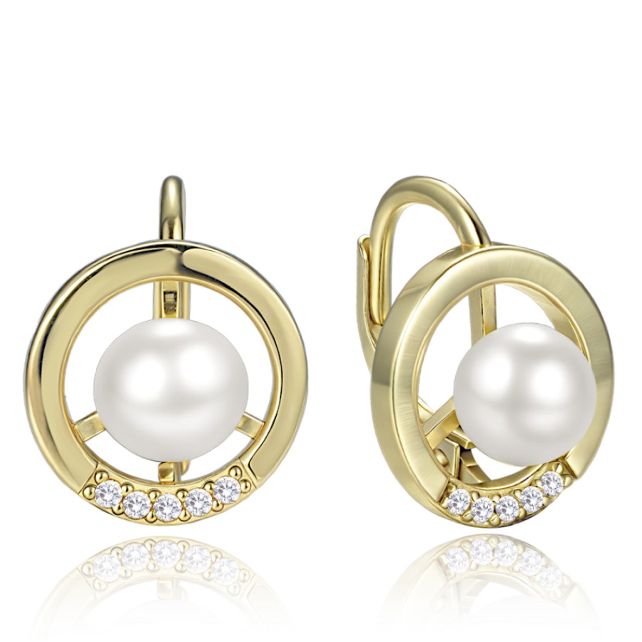 Pozlacené stříbrné náušnice MINET s perlou a zirkony jsou vyrobené ze stříbra Ag 925/1000, pokovené vrstvou zlata a chráněné e-coatingem. Patentové zapínání zajišťuje bezpečné nošení. Elegantní motiv kroužků působí sofistikovaně.