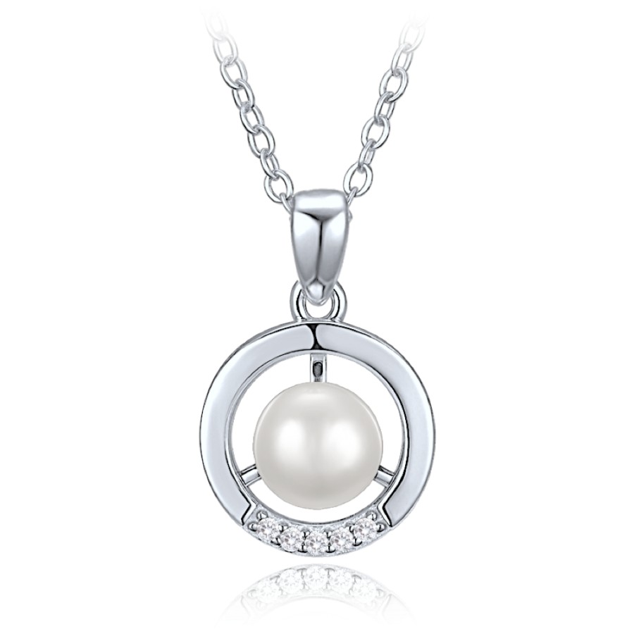 Stříbrný náhrdelník MINET s motivem kroužku, perlou a zirkonem je vyroben ze stříbra Ag 925/1000 s rhodiovaným povrchem pro zachování barvy i lesku. Elegantní kombinace působí jemně a harmonicky.