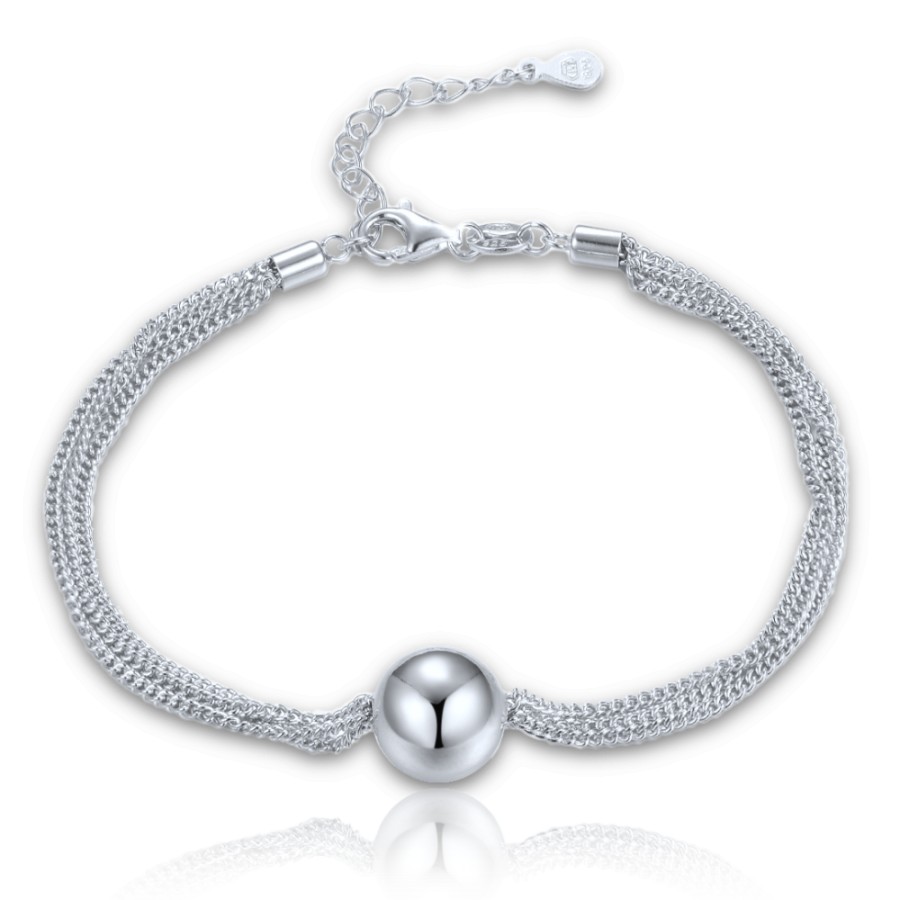 MINET Elegantní stříbrný náramek se třemi řetízky s kuličkou