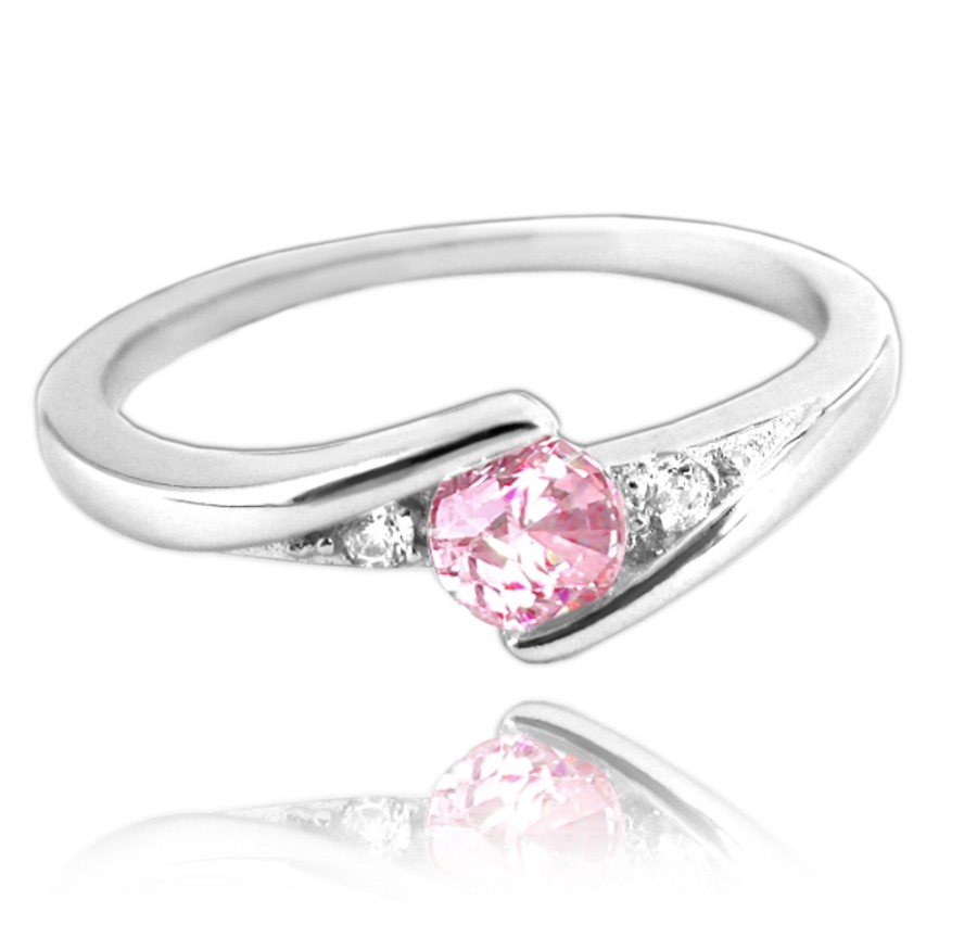 MINET Elegantní stříbrný prsten s růžovým zirkonem vel. 63
