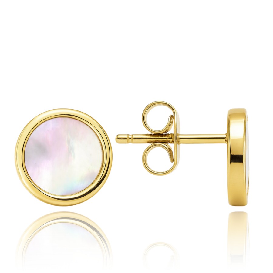 MINET Elegantní zlaté náušnice s bílou perletí Au 585/1000 1,55g