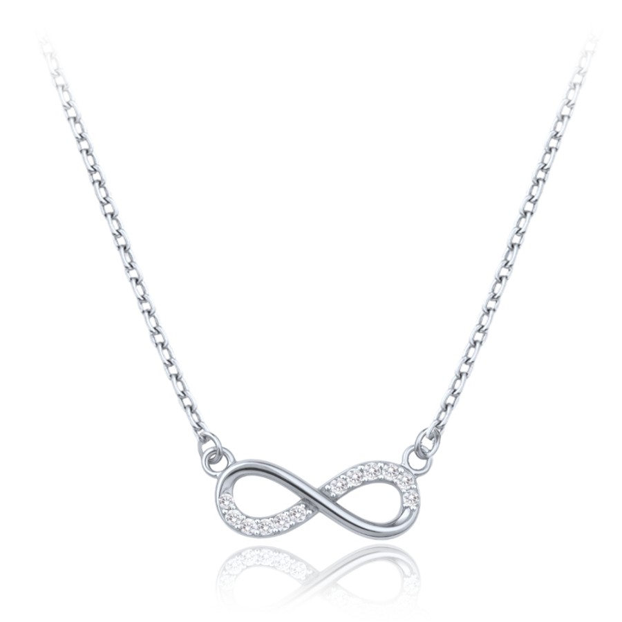 MINET Elegantní zlatý náhrdelník z bílého zlata nekonečno s bílými zirkony Au 585/1000 1,85g