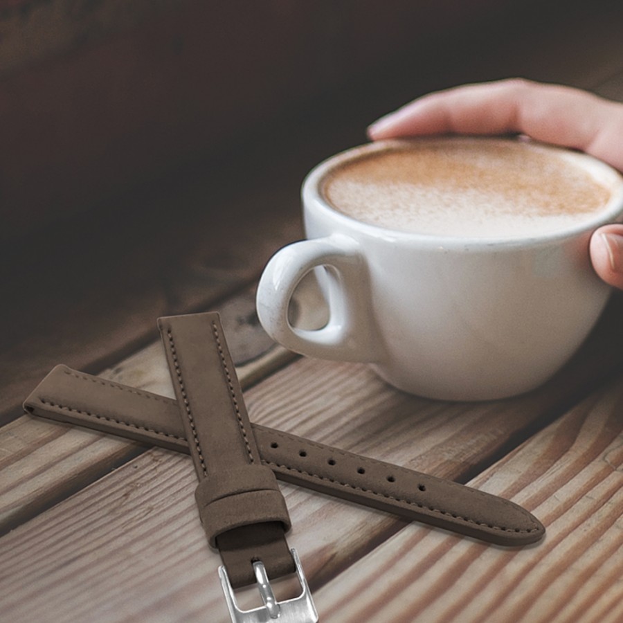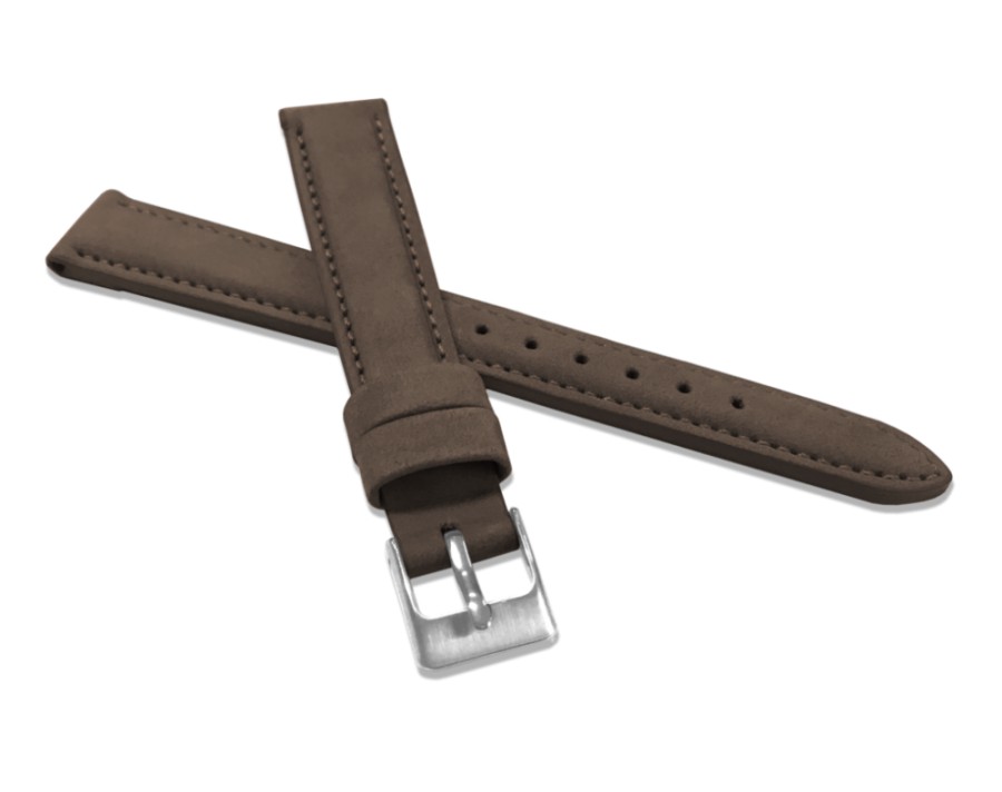 MINET MSNUE14 - MINET Kávově hnědý prošitý kožený řemínek z jemného nubuku - 14