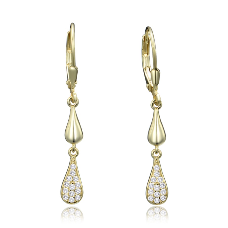 MINET Luxusní pozlacené stříbrné náušnice s bílými zirkony