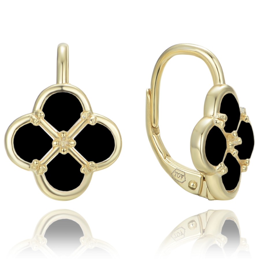 MINET Pozlacené stříbrné náušnice čtyřlístky s černou perletí