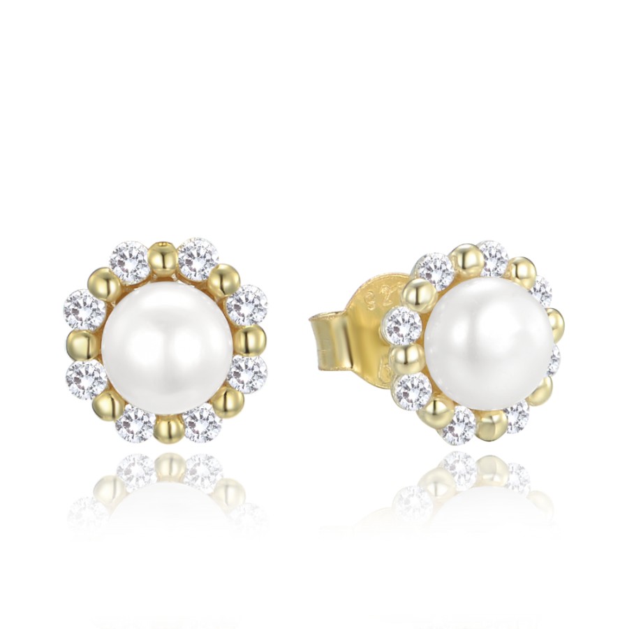 MINET Pozlacené stříbrné náušnice s přírodními perlami a zirkony