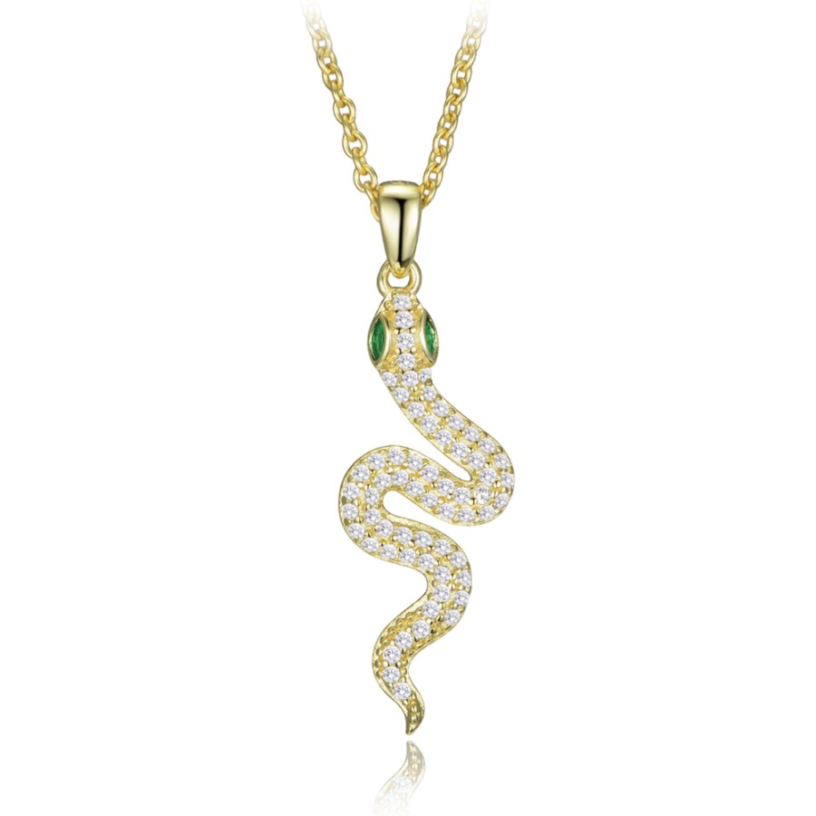 Náhrdelník MINET je vyroben z pravého stříbra Ag 925/1000 pokoveného vrstvou 14k zlata. Přívěsek má motiv hada a zdobí ho bílé a zelené zirkony.