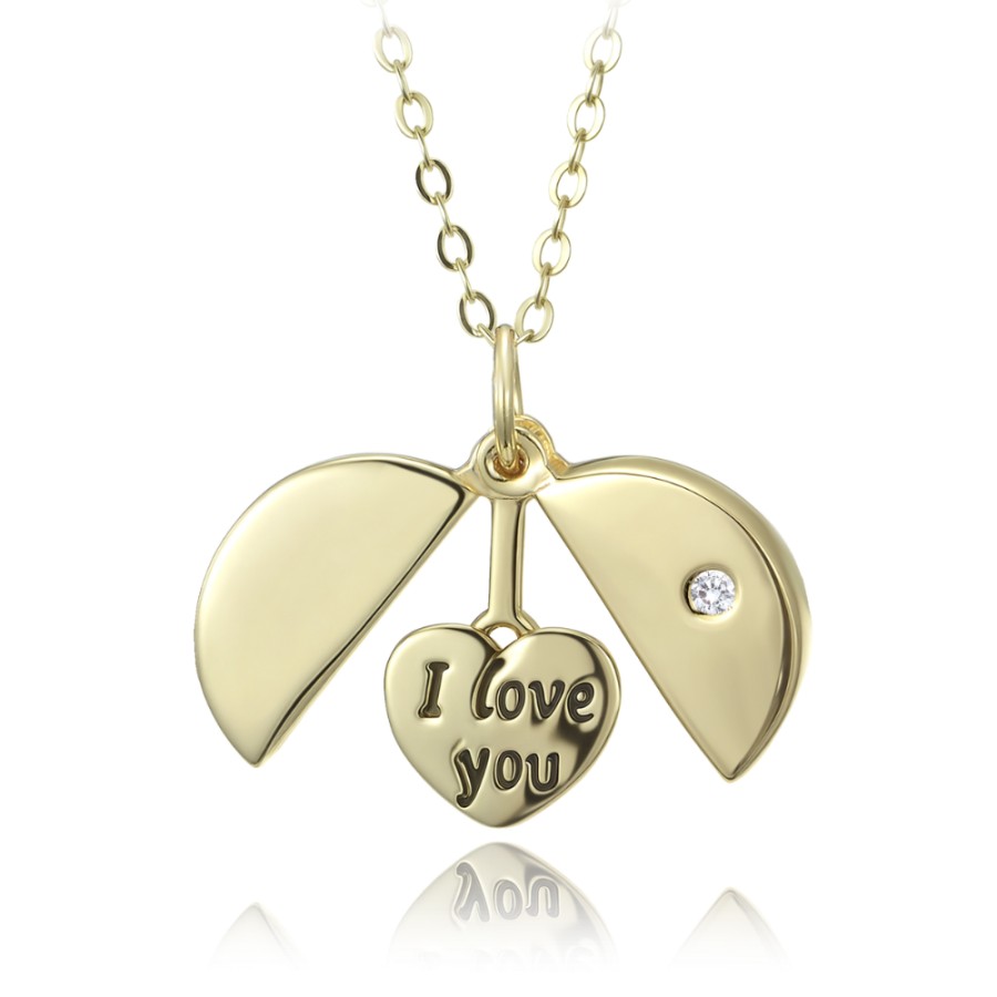 MINET Pozlacený stříbrný náhrdelník s otevíracím přívěskem a srdíčkem s nápisem "I love you"