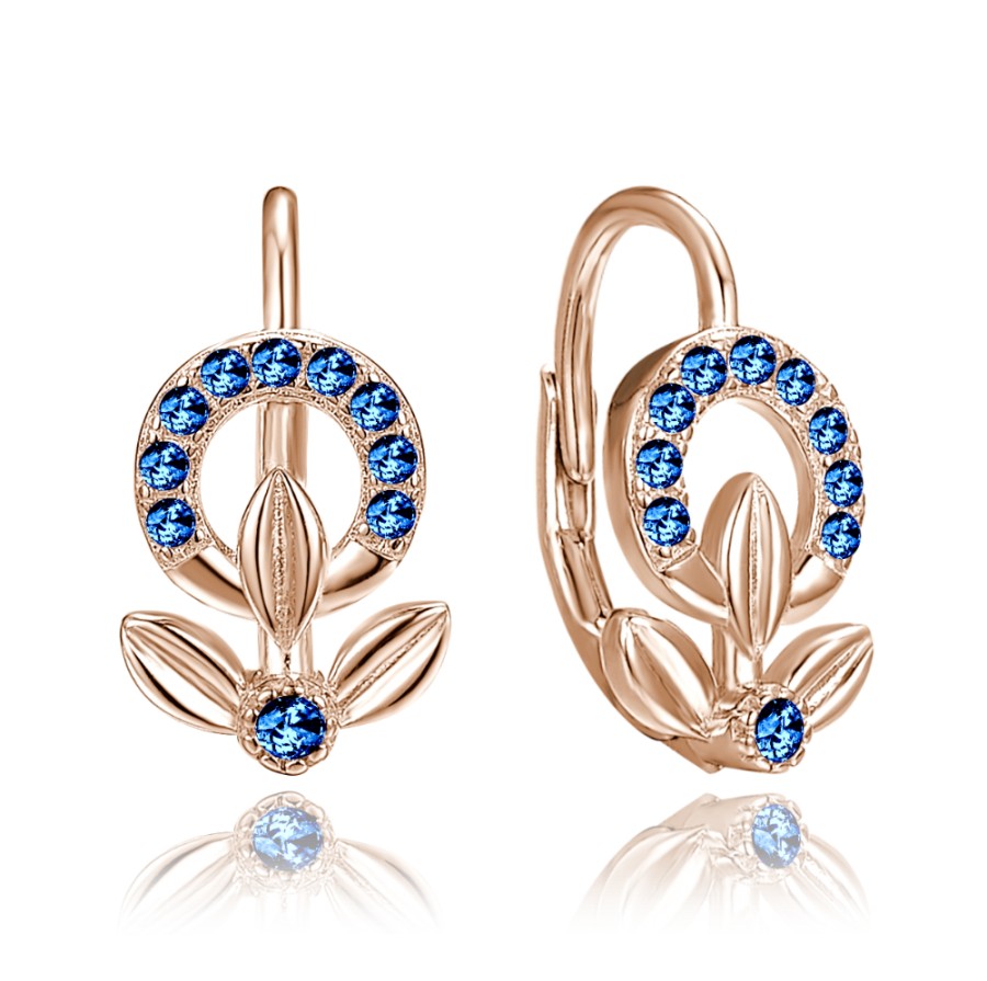 MINET Rose gold stříbrné náušnice kytičky s modrými zirkony