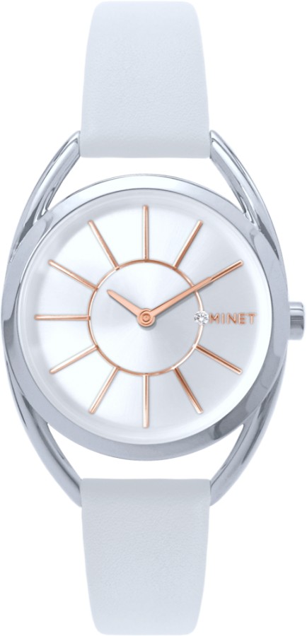 MINET MWL5237 - MINET Stříbrné dámské hodinky ICON SILVER s bílým koženým řemínkem
