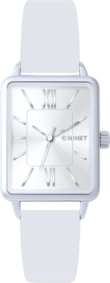 MINET MWL5415 - MINET Stříbrné dámské hodinky SIENA s bílým koženým řemínkem