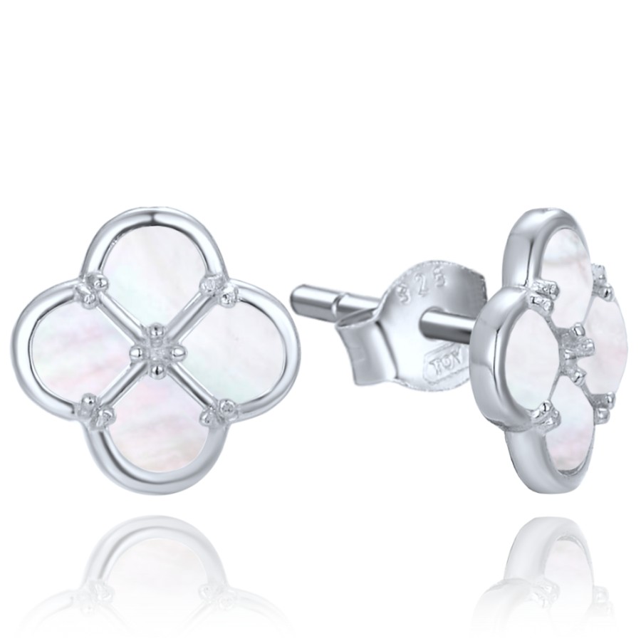 MINET Stříbrné náušnice čtyřlístky s bílou perletí