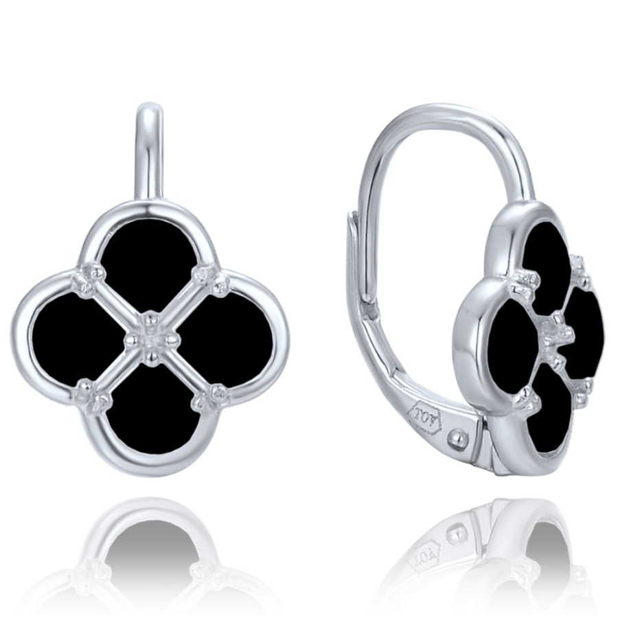 MINET Stříbrné náušnice čtyřlístky s černou perletí