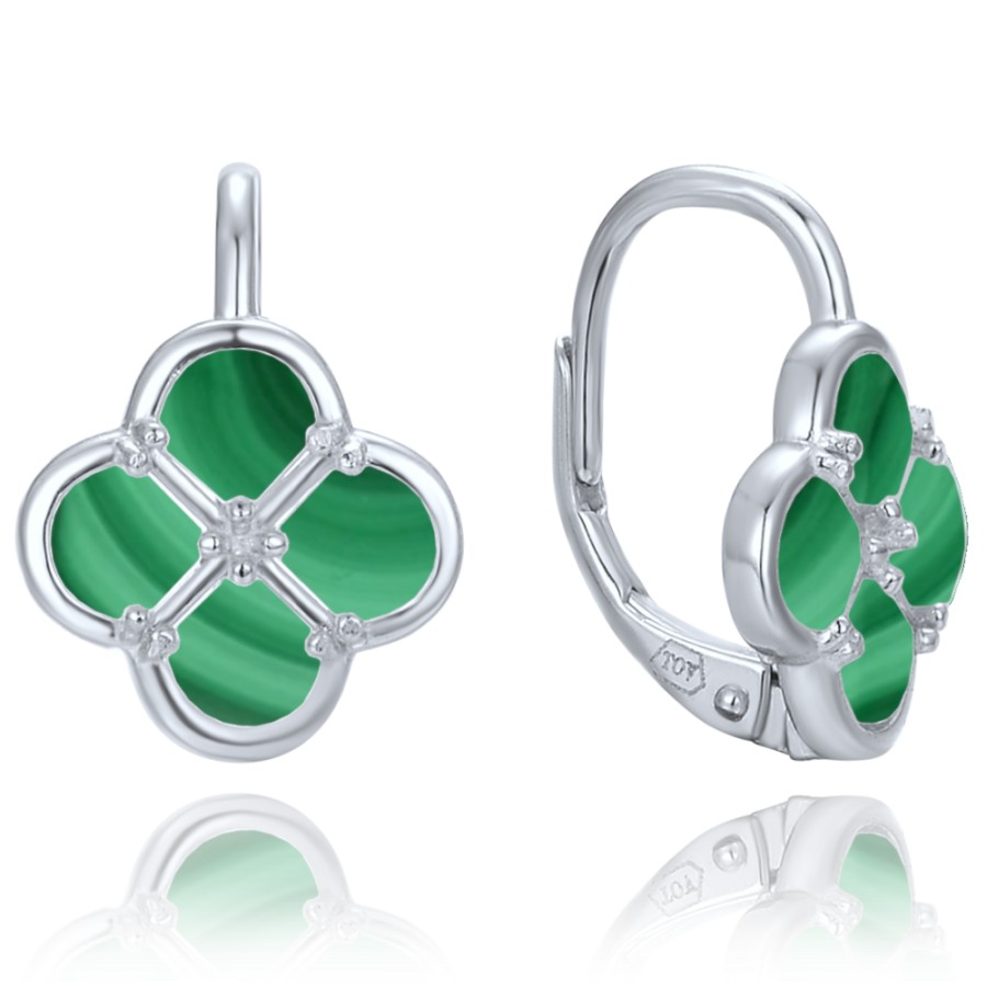 MINET JMAS7058ZE00 - MINET Stříbrné náušnice čtyřlístky s malachitem