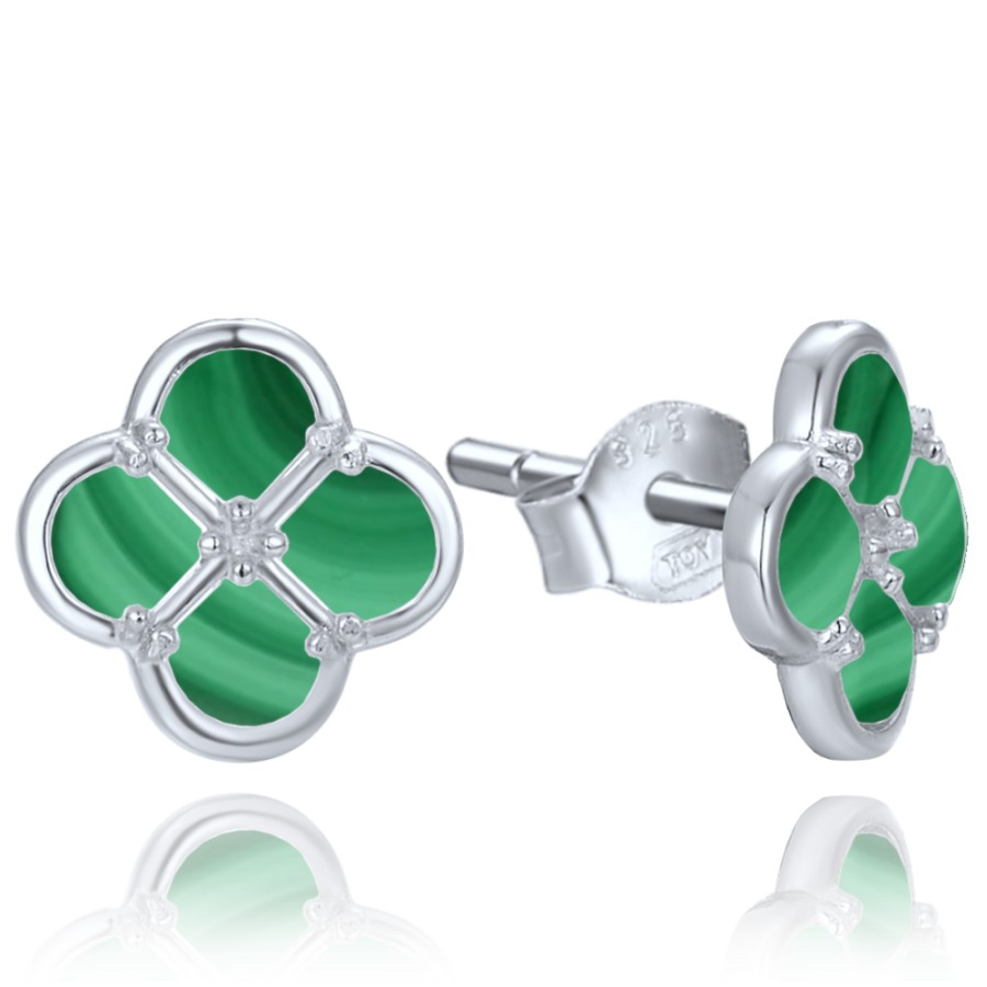 MINET JMAS7058ZE01 - MINET Stříbrné náušnice čtyřlístky s malachitem
