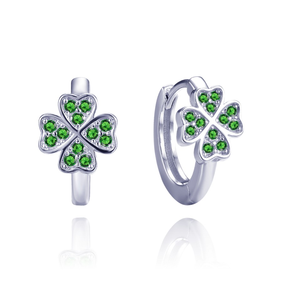 MINET JMAN0620ZE00 - MINET Stříbrné náušnice čtyřlístky se zelenými zirkony