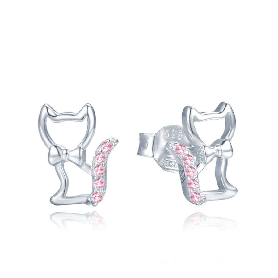 MINET JMAN0585PE00 - MINET Stříbrné náušnice kočky s růžovými zirkony