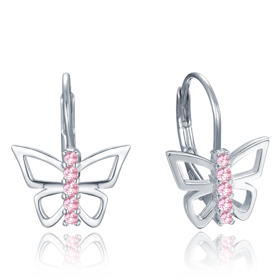 MINET JMAD0053PE00 - MINET Stříbrné náušnice motýlci s růžovými zirkony